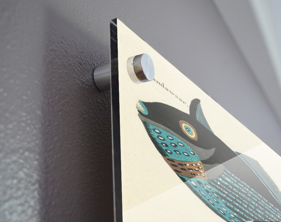 Printed to the edge - Ready to hang - provided with 4 premium polished aluminum stand off ( wall screws and mounting hardware provided ) We suggest a thicker 3/16" acrylic for any size over 42 inches to guarantee a straight acrylic, without curvature