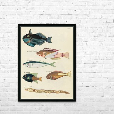 Get this artwork "Colourful and surreal illustrations of fishes found in Moluccas Indonesia and the East Indies by Louis Renard 1678 -1746 from Histoire naturelle des plus rares curiositez de la mer des Indes 1754." in a framed print.