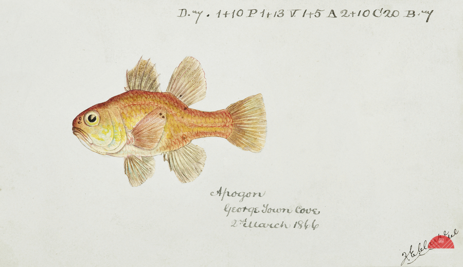 Antique fish vincentia conspera southern cardinalfish drawn by Frank Edward Clarke 1849-1899.