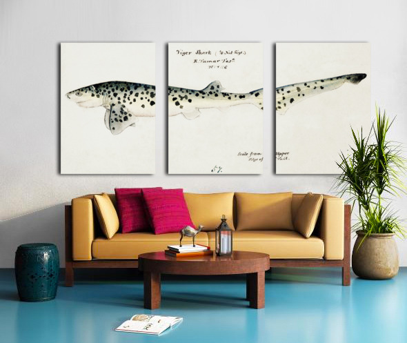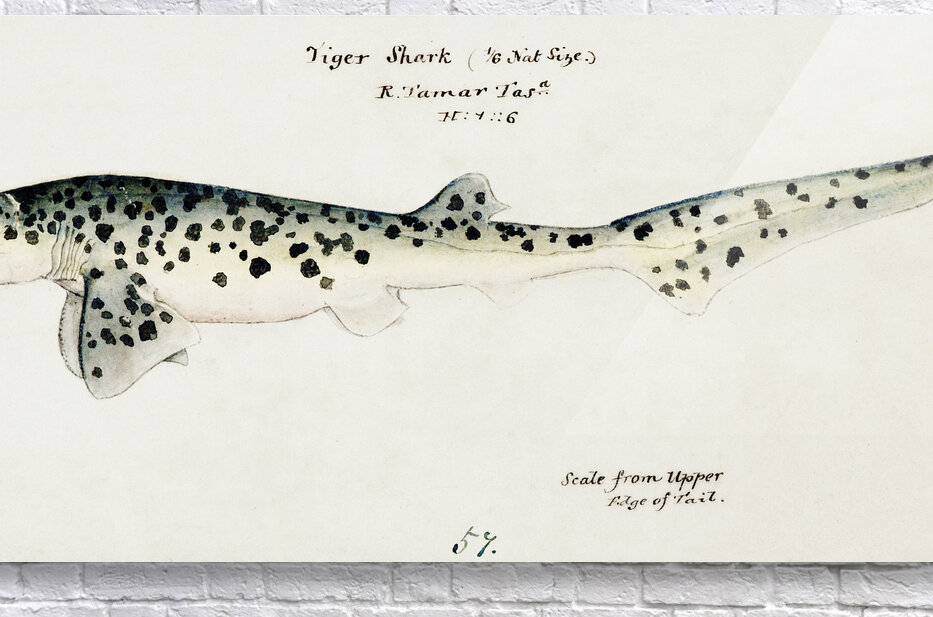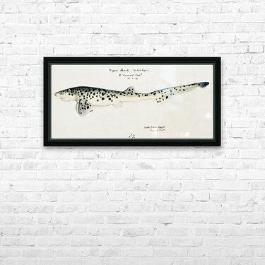 Antique fish Notorynchus cepedianus Tas : Broad seven-gill shark South Pacific Fishes by Frank Edward Clarke1849-1899.  Picture Frame Printing