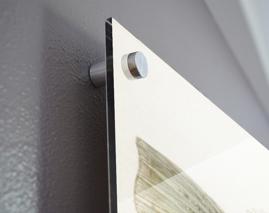 Printed to the edge - Ready to hang - provided with 4 premium polished aluminum stand off ( wall screws and mounting hardware provided ) We suggest a thicker 3/16" acrylic for any size over 42 inches to guarantee a straight acrylic, without curvature