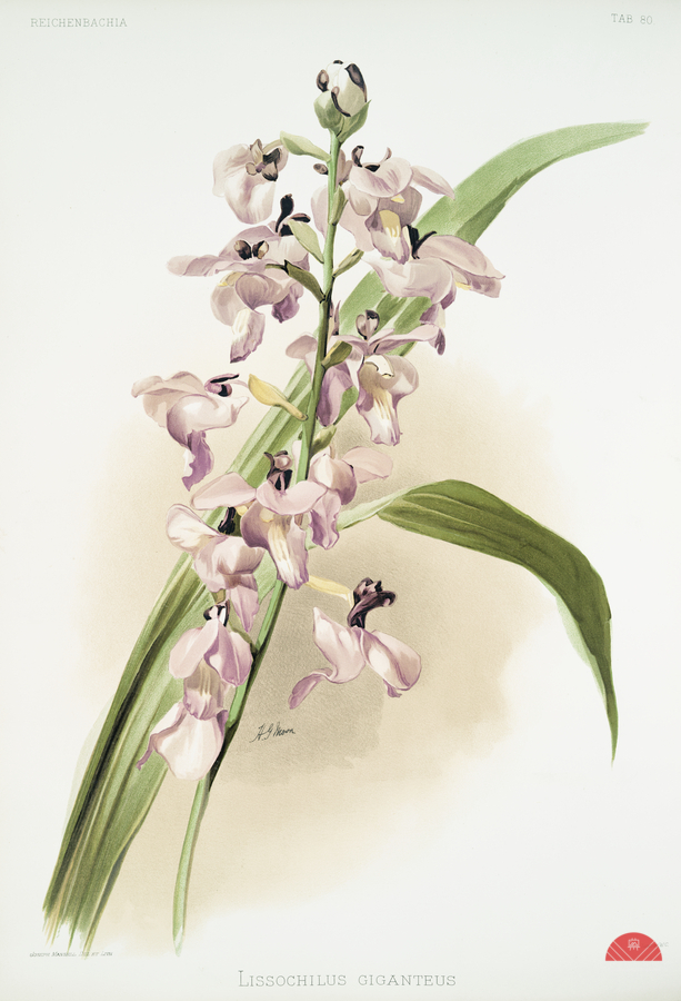 LISSOCHILUS GIGANTEUS FROM REICHENBACHIA ORCHIDS 1888-1894 ILLUSTRATED BY FREDERICK SANDER 1847-1920.