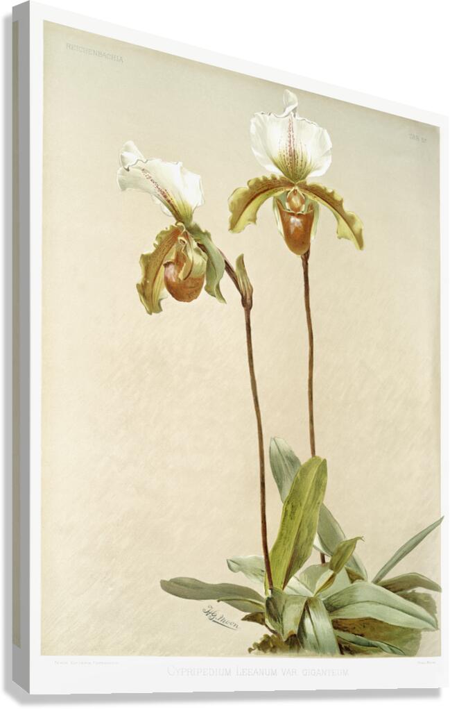Cypripedium leeanum var giganteum from Reichenbachia Orchids 1888-1894 illustrated by Frederick Sander 1847-1920.  Canvas print