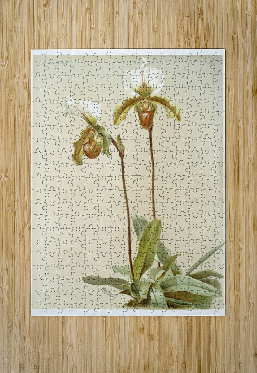Cypripedium leeanum var giganteum from Reichenbachia Orchids 1888-1894 illustrated by Frederick Sander 1847-1920.  IStockHistory com Puzzle printing