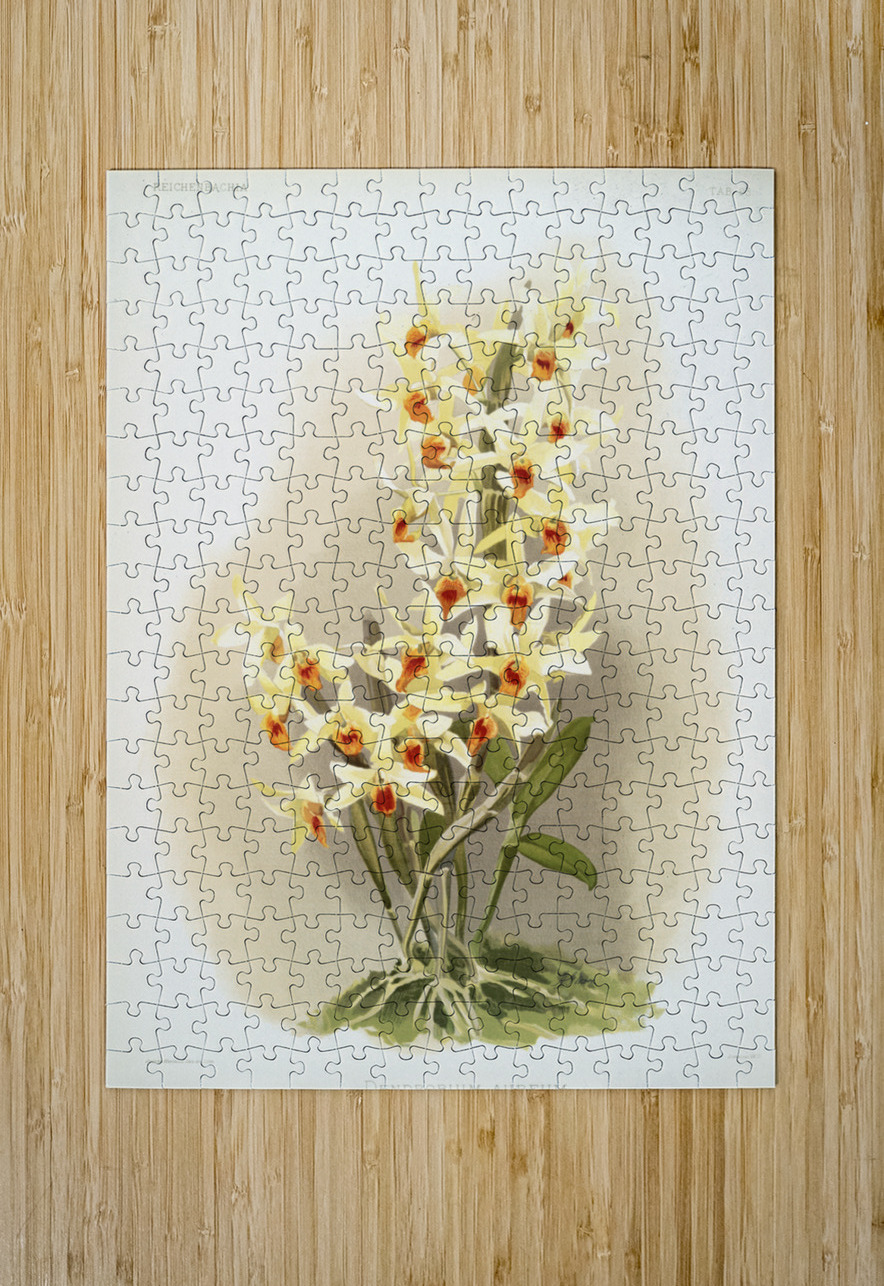 Dendrobium aureum from Reichenbachia Orchids 1888-1894 illustrated by Frederick Sander 1847-1920.  IStockHistory com Puzzle printing