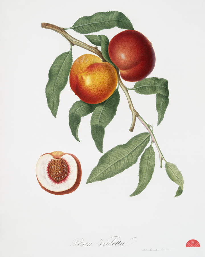 Walnut Persica violacea from Pomona Italiana 1817 - 1839 by Giorgio Gallesio 1772-1839.   Wood print