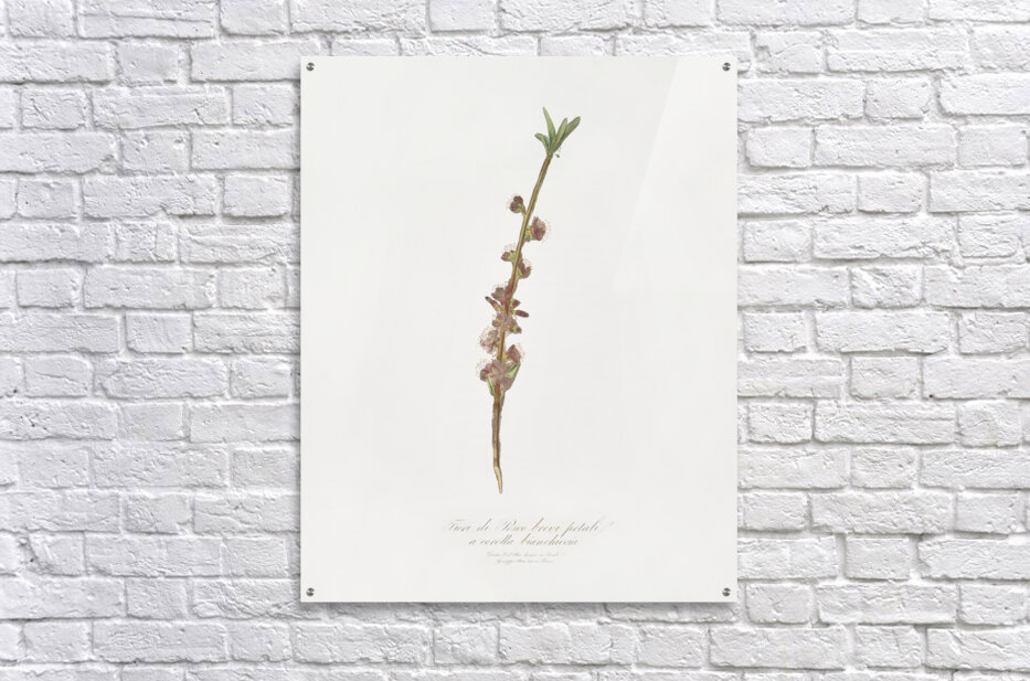 Peach flower Prunus persica from Pomona Italiana 1817 - 1839 by Giorgio Gallesio 1772-1839.  Picture Frame Printing