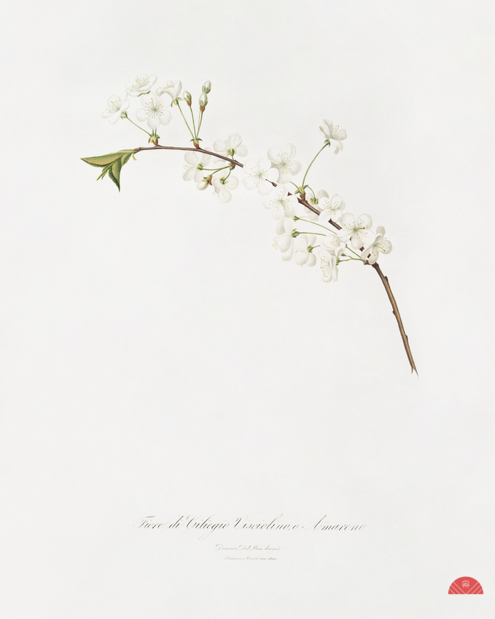 AMARENA CHERRY FLOWER PRUNUS CERASUS FROM POMONA ITALIANA 1817 - 1839 BY GIORGIO GALLESIO 1772-1839.