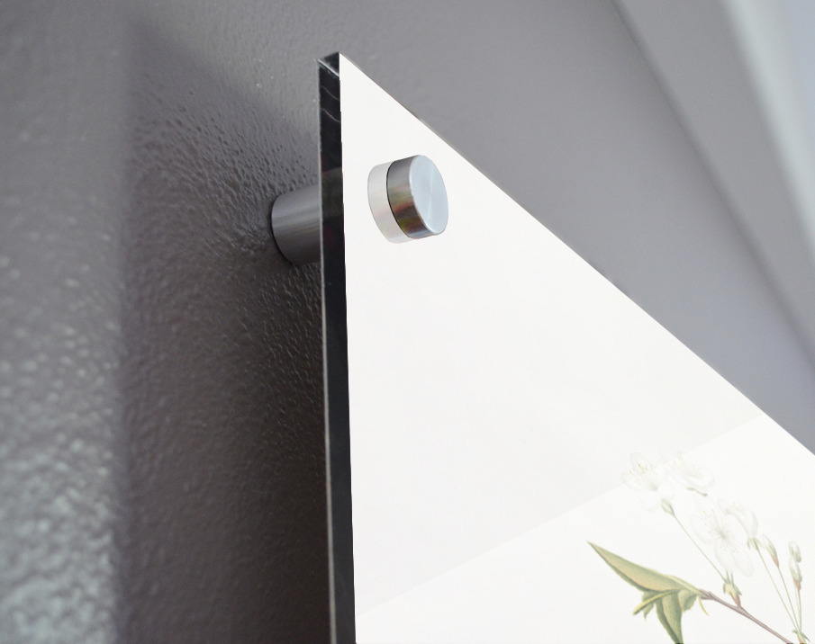 Printed to the edge - Ready to hang - provided with 4 premium polished aluminum stand off ( wall screws and mounting hardware provided ) We suggest a thicker 3/16" acrylic for any size over 42 inches to guarantee a straight acrylic, without curvature