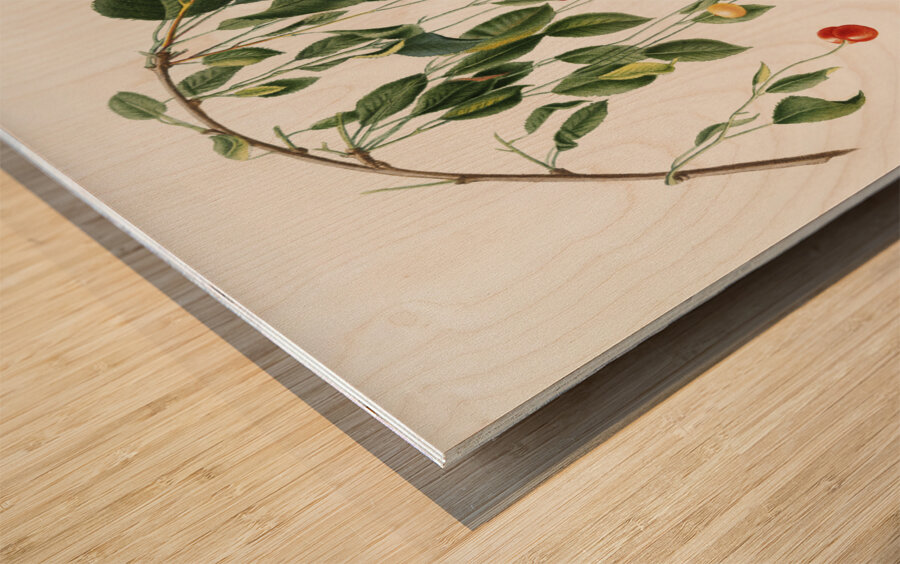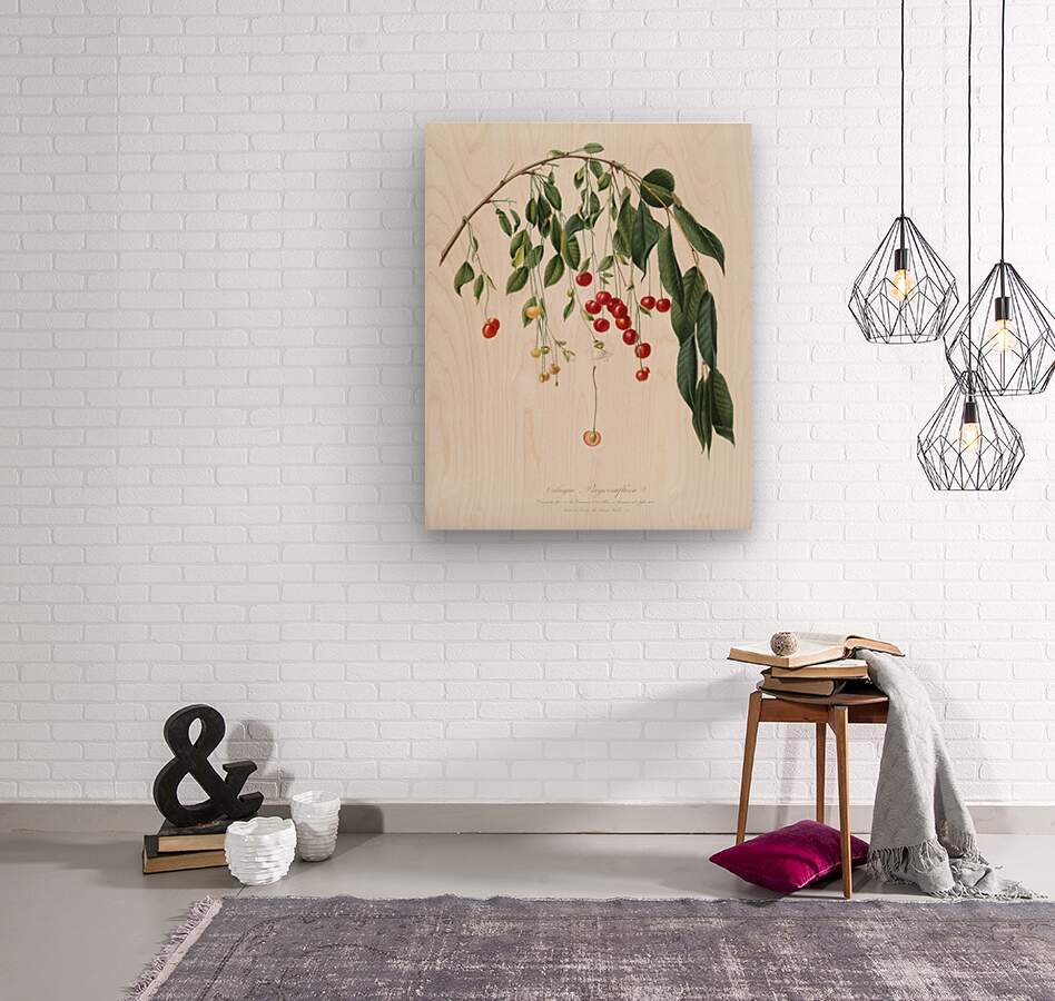 Visciola Cherries Cerasus visciola from Pomona Italiana 1817 - 1839 by Giorgio Gallesio 1772-1839.   Wood print