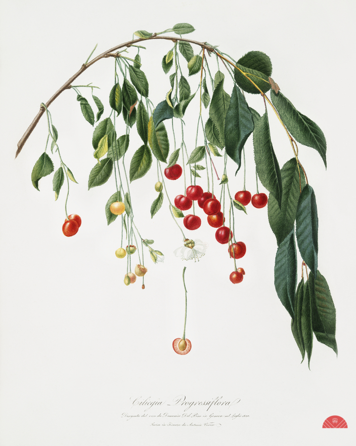 Get this artwork "Visciola Cherries Cerasus visciola from Pomona Italiana 1817 - 1839 by Giorgio Gallesio 1772-1839. " in a framed print.