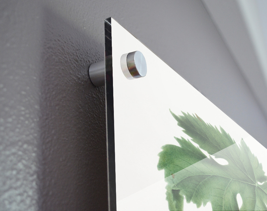 Printed to the edge - Ready to hang - provided with 4 premium polished aluminum stand off ( wall screws and mounting hardware provided ) We suggest a thicker 3/16" acrylic for any size over 42 inches to guarantee a straight acrylic, without curvature