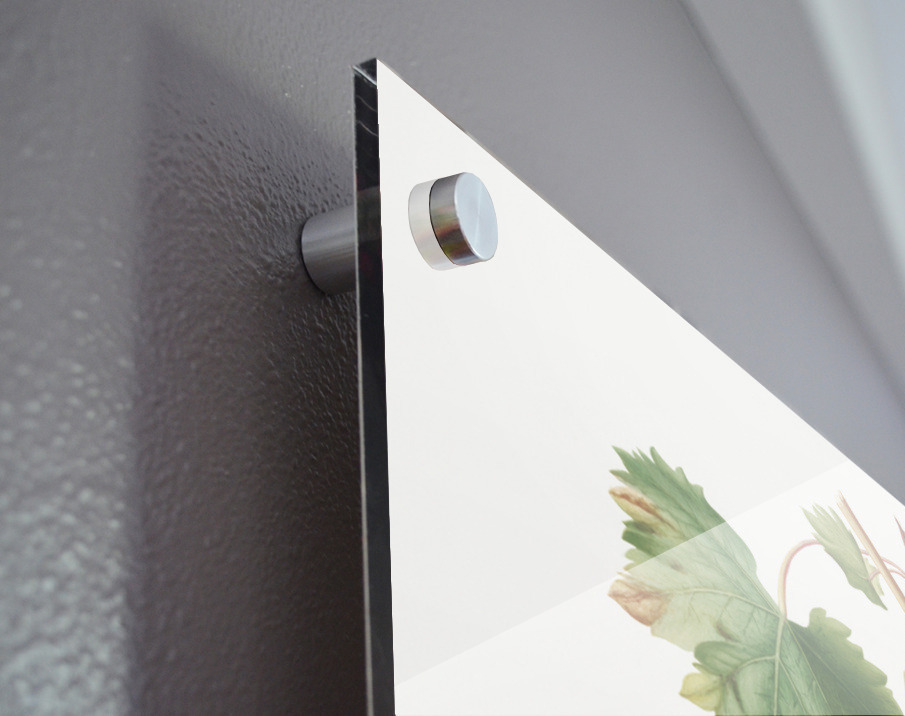Printed to the edge - Ready to hang - provided with 4 premium polished aluminum stand off ( wall screws and mounting hardware provided ) We suggest a thicker 3/16" acrylic for any size over 42 inches to guarantee a straight acrylic, without curvature