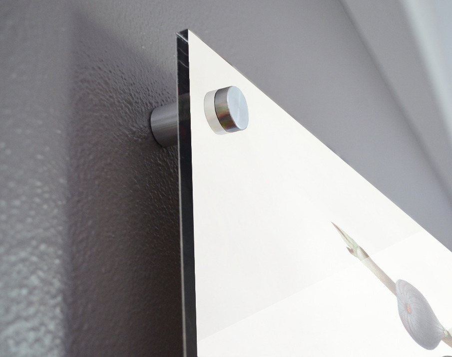 Printed to the edge - Ready to hang - provided with 4 premium polished aluminum stand off ( wall screws and mounting hardware provided ) We suggest a thicker 3/16" acrylic for any size over 42 inches to guarantee a straight acrylic, without curvature