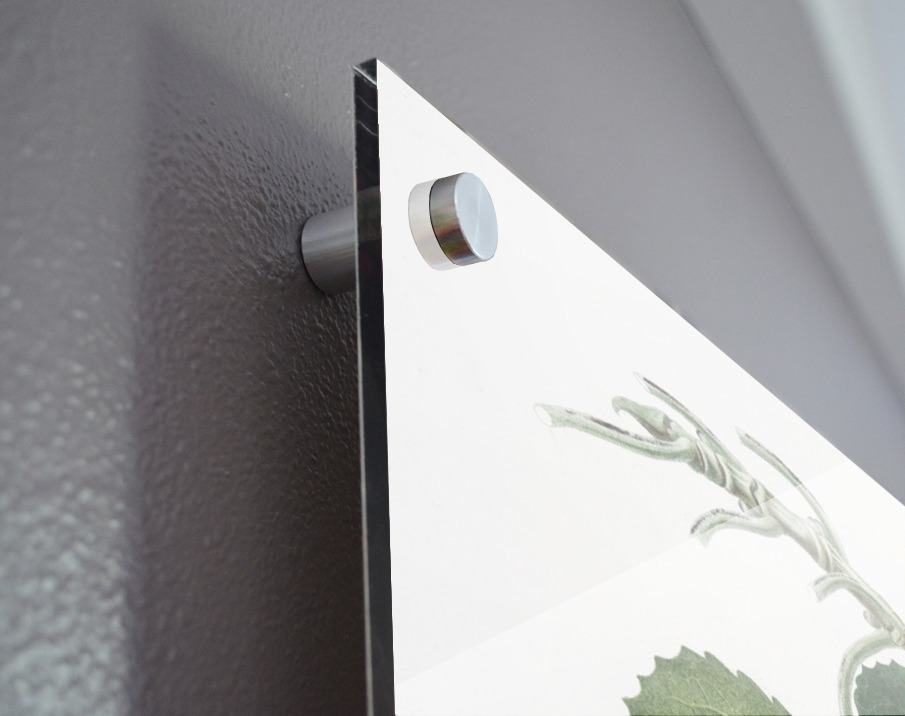 Printed to the edge - Ready to hang - provided with 4 premium polished aluminum stand off ( wall screws and mounting hardware provided ) We suggest a thicker 3/16" acrylic for any size over 42 inches to guarantee a straight acrylic, without curvature