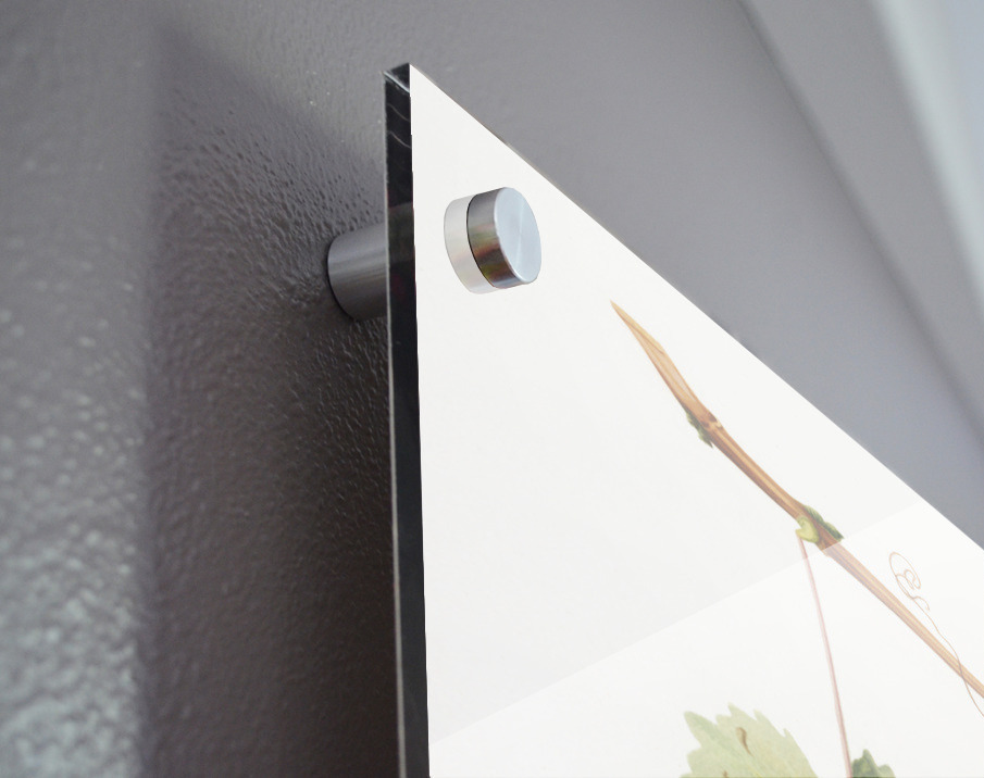 Printed to the edge - Ready to hang - provided with 4 premium polished aluminum stand off ( wall screws and mounting hardware provided ) We suggest a thicker 3/16" acrylic for any size over 42 inches to guarantee a straight acrylic, without curvature