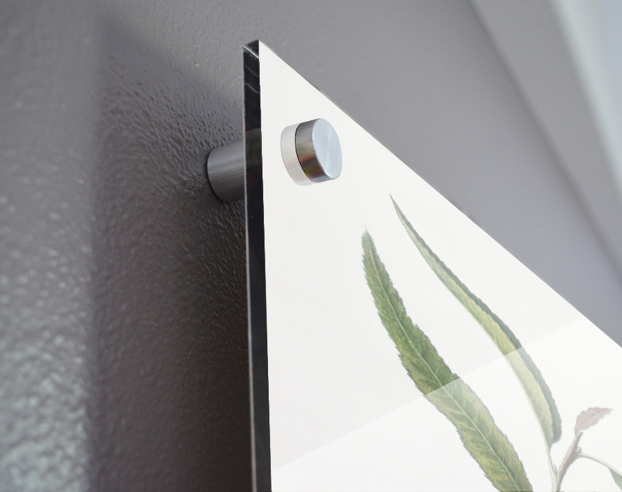 Printed to the edge - Ready to hang - provided with 4 premium polished aluminum stand off ( wall screws and mounting hardware provided ) We suggest a thicker 3/16" acrylic for any size over 42 inches to guarantee a straight acrylic, without curvature