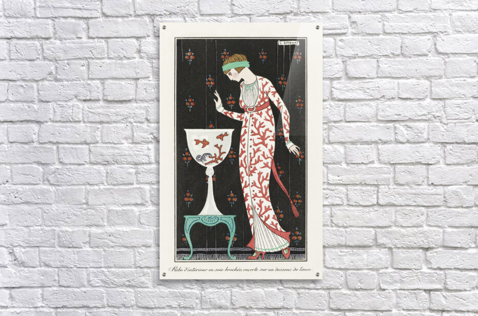 Get this artwork "Costumes Parisiens: Grande robe du soir from Journal des Dames et des Modes 1913 fashion illustration by George Barbier. " in a framed print.