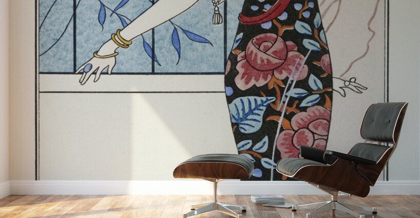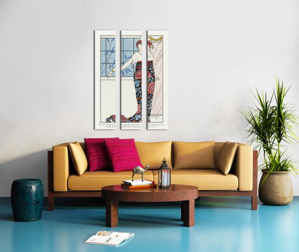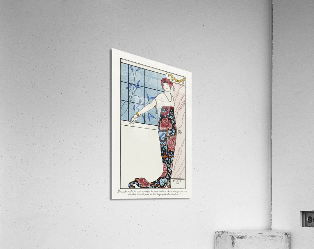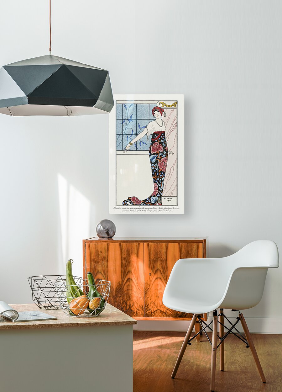 Get this artwork "Costumes Parisiens: Grande robe du soir from Journal des Dames et des Modes 1913 fashion illustration by George Barbier. " in a framed print.