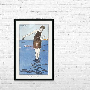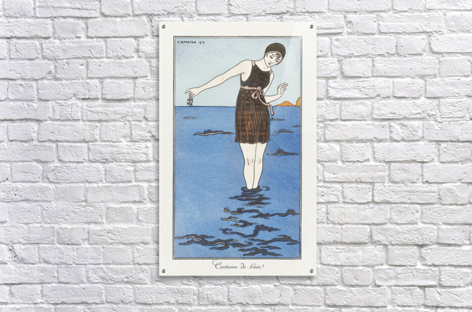 Get this artwork "Costumes Parisiens: Grande robe du soir from Journal des Dames et des Modes 1913 fashion illustration by George Barbier. " in a framed print.
