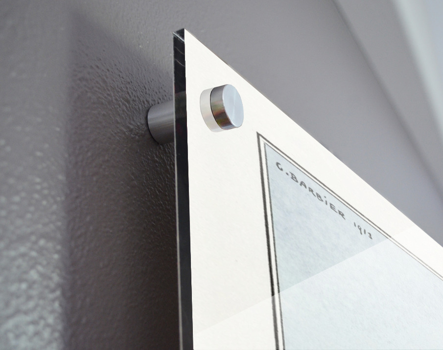 Printed to the edge - Ready to hang - provided with 4 premium polished aluminum stand off ( wall screws and mounting hardware provided ) We suggest a thicker 3/16" acrylic for any size over 42 inches to guarantee a straight acrylic, without curvature