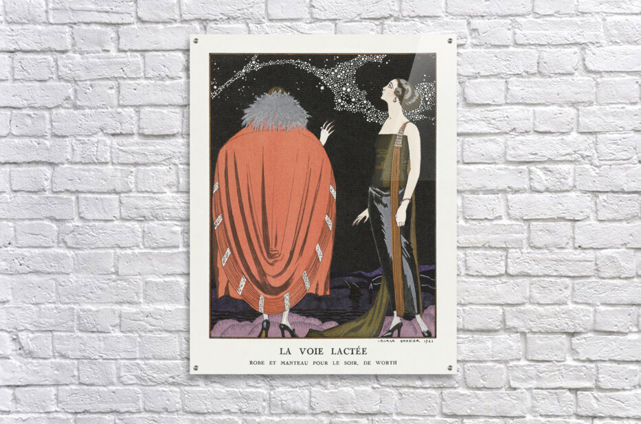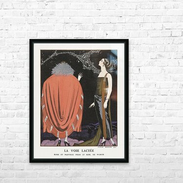 Get this artwork "La voie lactée: Robe et manteau pour le soir de Worth 1921 fashion illustration by George Barbier. " in a framed print.
