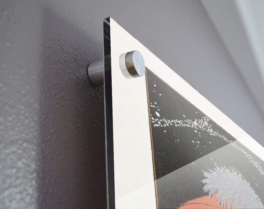 Printed to the edge - Ready to hang - provided with 4 premium polished aluminum stand off ( wall screws and mounting hardware provided ) We suggest a thicker 3/16" acrylic for any size over 42 inches to guarantee a straight acrylic, without curvature