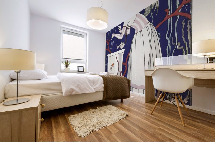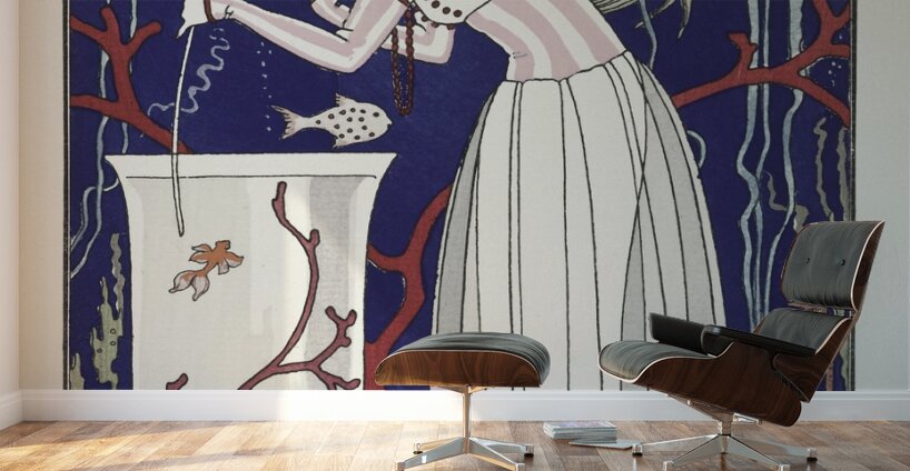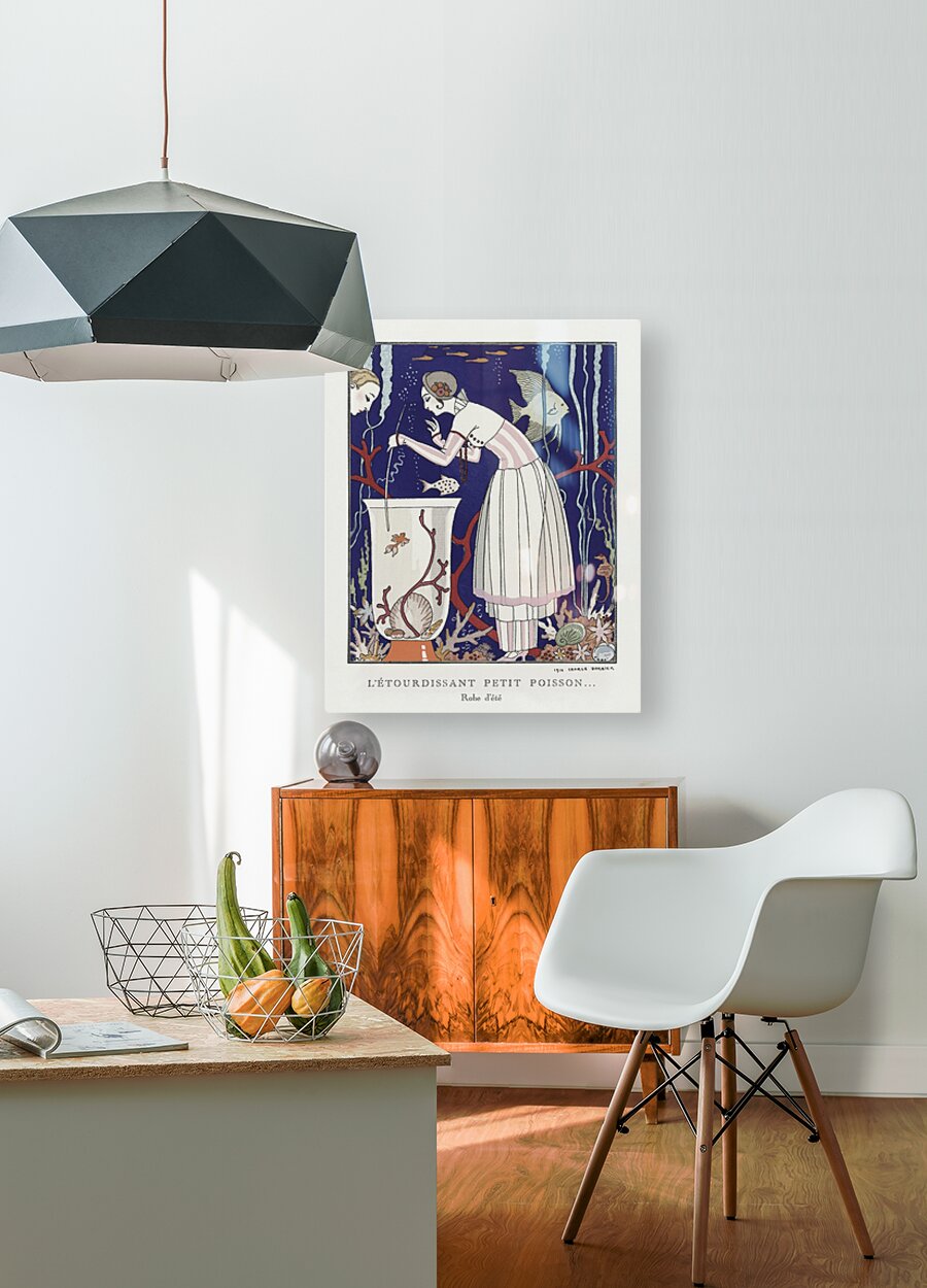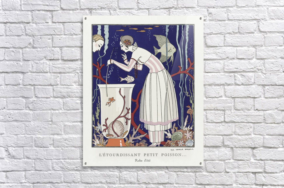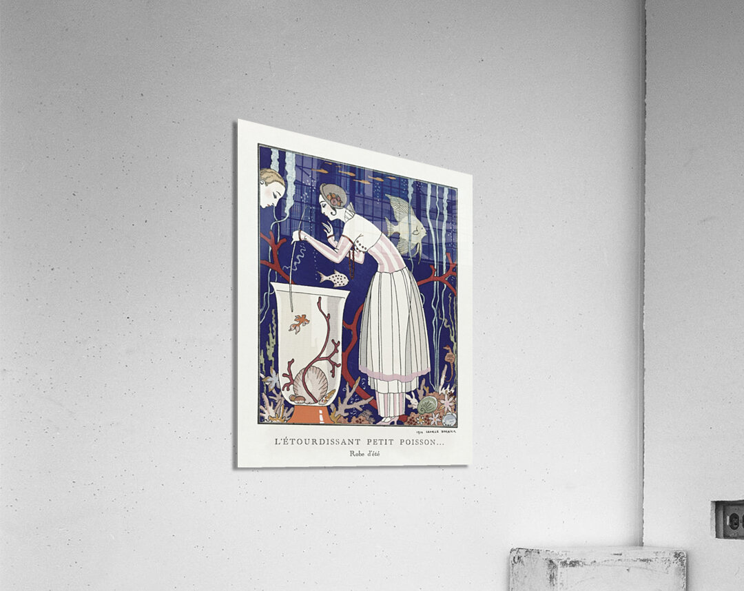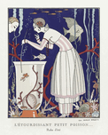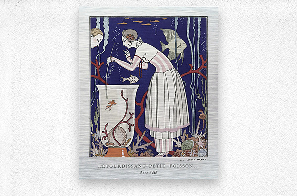 Llétourdissant petit poisson: robe dététeacute 1914 fashion illustration  by George Barbier.  Wood print