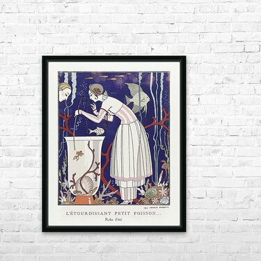 Llétourdissant petit poisson: robe dététeacute 1914 fashion illustration  by George Barbier.  Picture Frame Printing