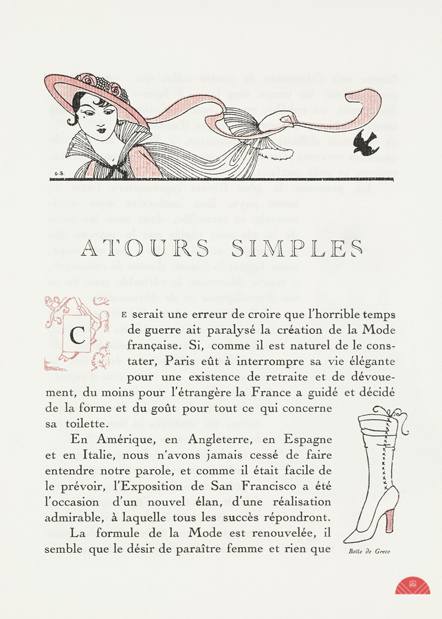 AUTOURS SIMPLES 1915 FASHION ILLUSTRATION BY GEORGE BARBIER.