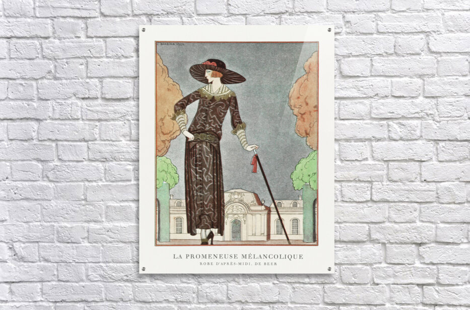 Get this artwork "La promeneuse mélancolique Robe daprès-midi de Beer 1922 fashion illustration by George Barbier. " in a framed print.