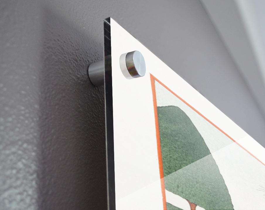 Printed to the edge - Ready to hang - provided with 4 premium polished aluminum stand off ( wall screws and mounting hardware provided ) We suggest a thicker 3/16" acrylic for any size over 42 inches to guarantee a straight acrylic, without curvature