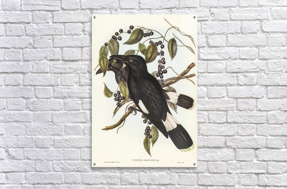 Great Crow-Shrike Strepera graculina illustrated by Elizabeth Gould 1804–1841 for John Gould’s 1804-1881 Birds of Australia  Picture Frame Printing