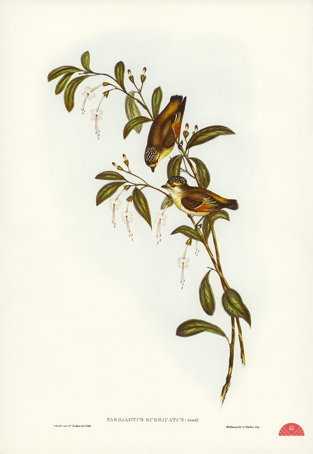 Red-lored Pardalote Pardalotus rubricatus illustrated by Elizabeth Gould 1804–1841 for John Gould’s 1804-1881 Birds of Australia