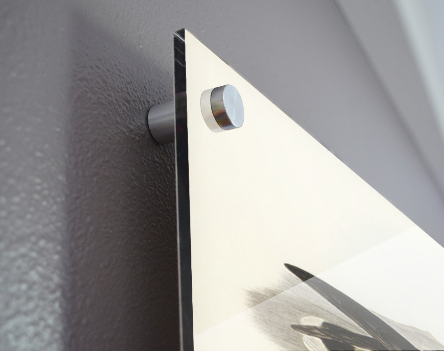 Printed to the edge - Ready to hang - provided with 4 premium polished aluminum stand off ( wall screws and mounting hardware provided ) We suggest a thicker 3/16" acrylic for any size over 42 inches to guarantee a straight acrylic, without curvature