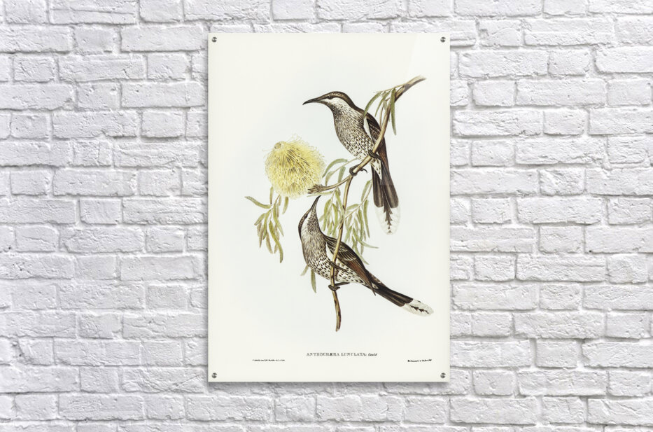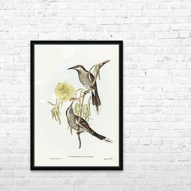 Lunulated Wattle Bird Anthochaera lunulata illustrated by Elizabeth Gould 1804–1841 for John Gould’s 1804-1881 Birds of Australia  Picture Frame Printing