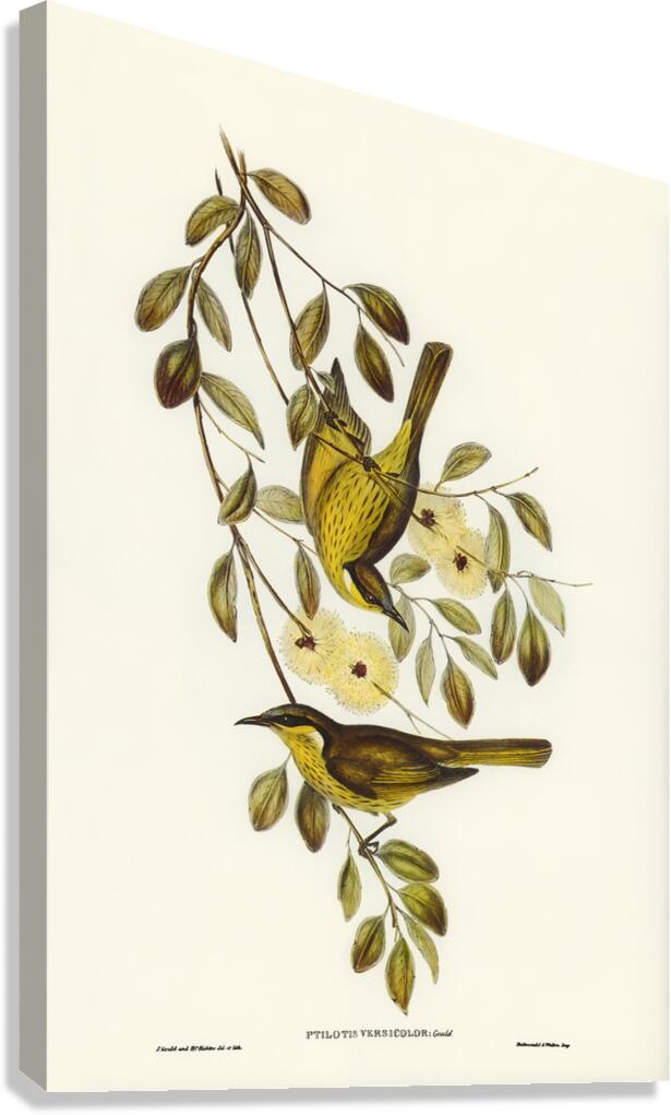 Varied Honey-eater Ptilotis versicolor illustrated by Elizabeth Gould 1804–1841 for John Gould’s 1804-1881 Birds of Australia  Canvas print