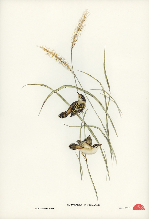 SQUARE-TAILED WARBLER CYSTICOLA ISURA ILLUSTRATED BY ELIZABETH GOULD 1804–1841 FOR JOHN GOULD’S 1804-1881 BIRDS OF AUSTRALIA