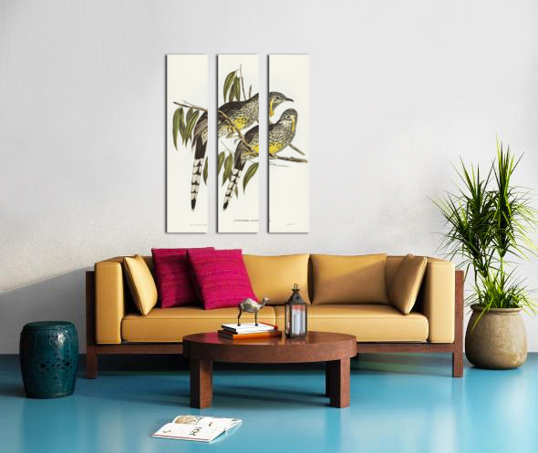 Graeat Wattled Honey-eater Anthochaera inauris illustrated by Elizabeth Gould 1804–1841 for John Gould’s 1804-1881 Birds of Australia  Canvas print