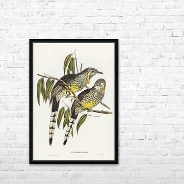Graeat Wattled Honey-eater Anthochaera inauris illustrated by Elizabeth Gould 1804–1841 for John Gould’s 1804-1881 Birds of Australia  Picture Frame Printing