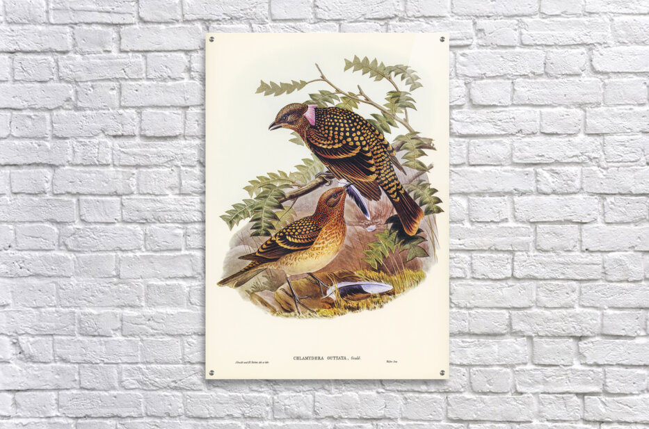 Get this artwork "Guttated Bower-bird Chlamydera guttata illustrated by Elizabeth Gould 1804–1841 for John Gould’s 1804-1881 Birds of Australia " in a framed print.