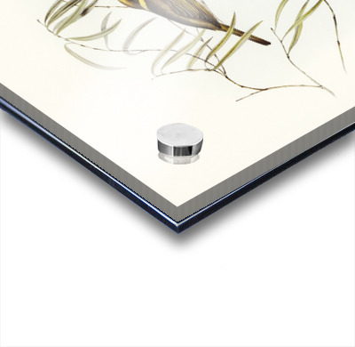 Printed to the edge - Ready to hang - provided with 4 premium polished aluminum stand off ( wall screws and mounting hardware provided ) We suggest a thicker 3/16" acrylic for any size over 42 inches to guarantee a straight acrylic, without curvature