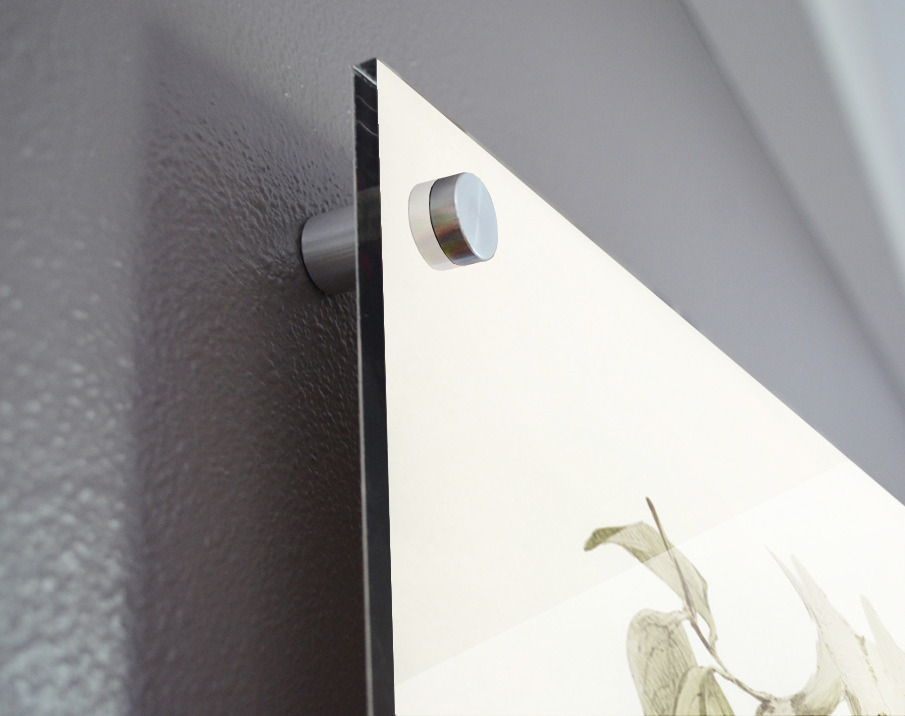 Printed to the edge - Ready to hang - provided with 4 premium polished aluminum stand off ( wall screws and mounting hardware provided ) We suggest a thicker 3/16" acrylic for any size over 42 inches to guarantee a straight acrylic, without curvature