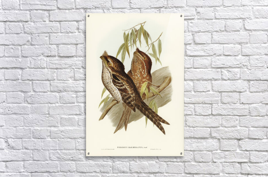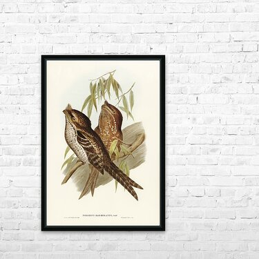 Marbled Podargus Podargus marmoratus illustrated by Elizabeth Gould 1804–1841 for John Gould’s 1804-1881 Birds of Australia  Picture Frame Printing