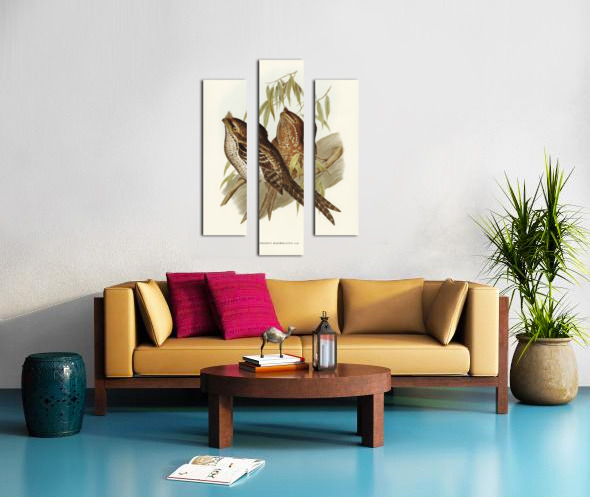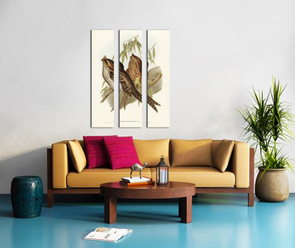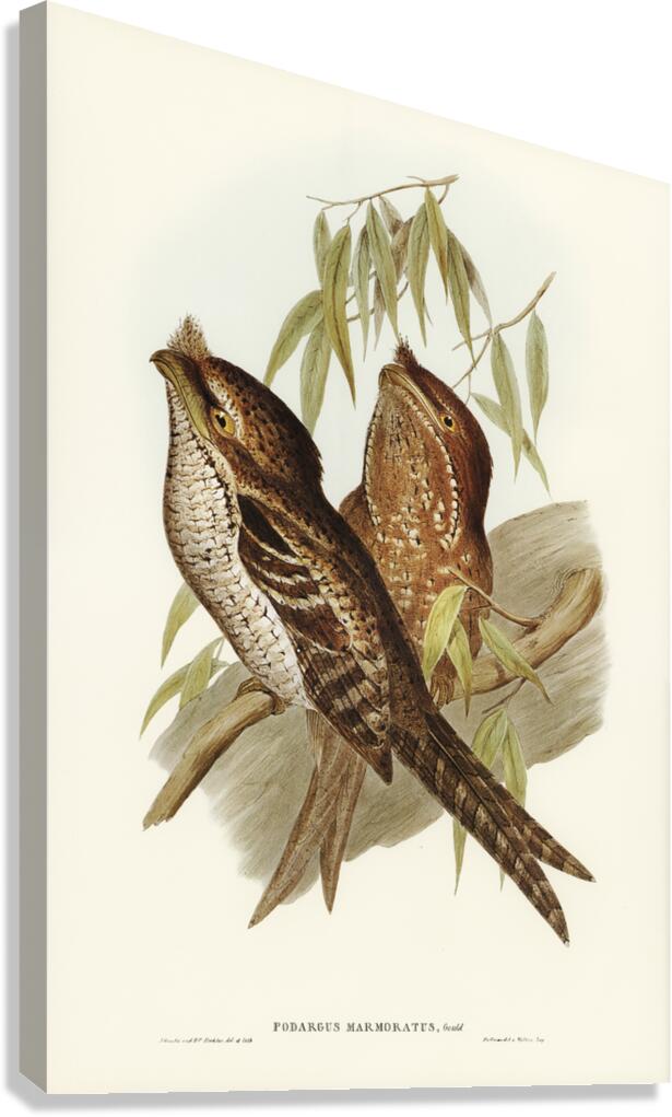 Marbled Podargus Podargus marmoratus illustrated by Elizabeth Gould 1804–1841 for John Gould’s 1804-1881 Birds of Australia  Canvas print
