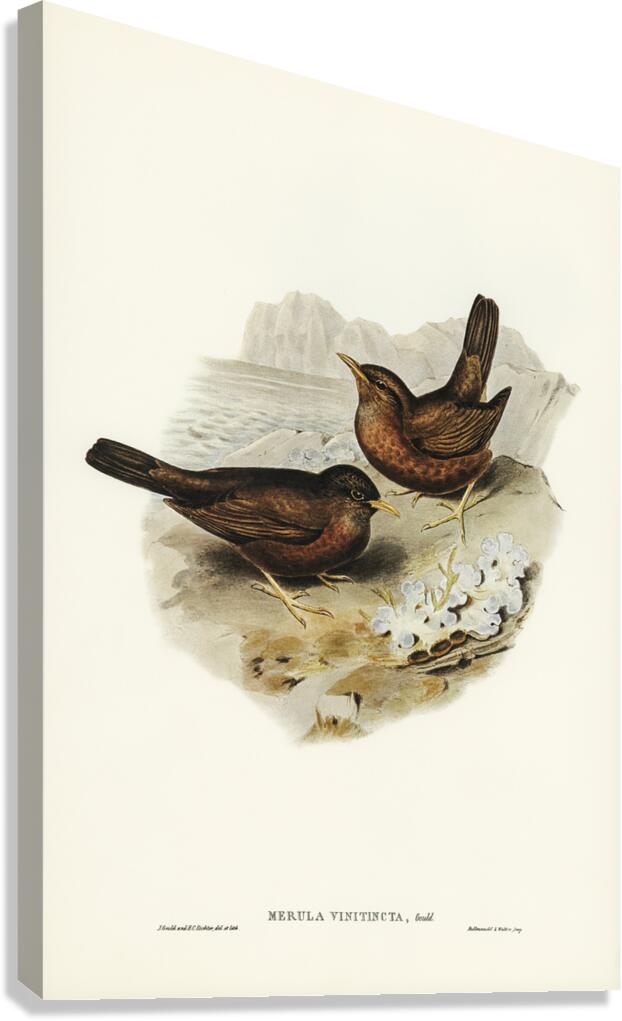 Vinous-tinted Blackbird Merula vinitincta illustrated by Elizabeth Gould 1804–1841 for John Gould’s 1804-1881 Birds of Australia  Canvas print