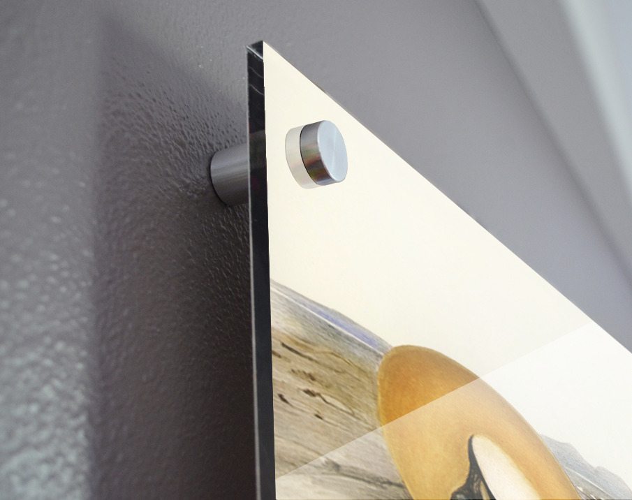 Printed to the edge - Ready to hang - provided with 4 premium polished aluminum stand off ( wall screws and mounting hardware provided )