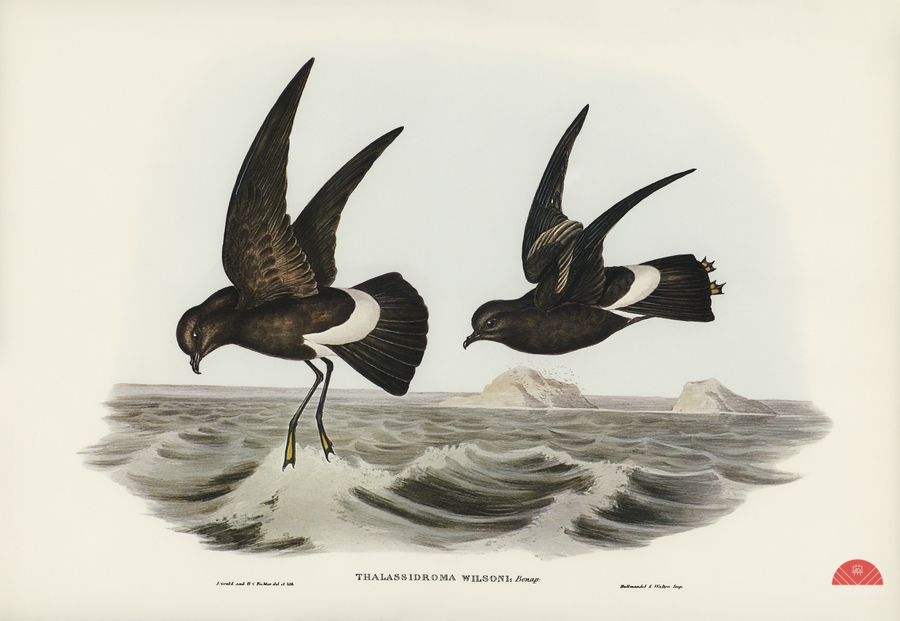 ABOUT THIS ARTWORK: WILSONS STORM PETREL THALASSIDROMA WILSONII ILLUSTRATED BY ELIZABETH GOULD 1804–1841 FOR JOHN GOULD’S 1804-1881 BIRDS OF AUSTRALIA