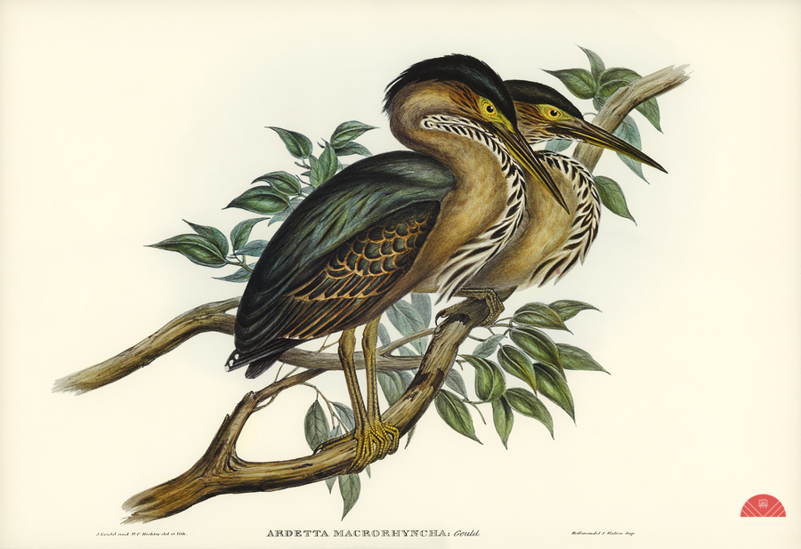 Thick-billed Green Bittern Ardetta macrorhyncha illustrated by Elizabeth Gould 1804–1841 for John Gould’s 1804-1881 Birds of Australia