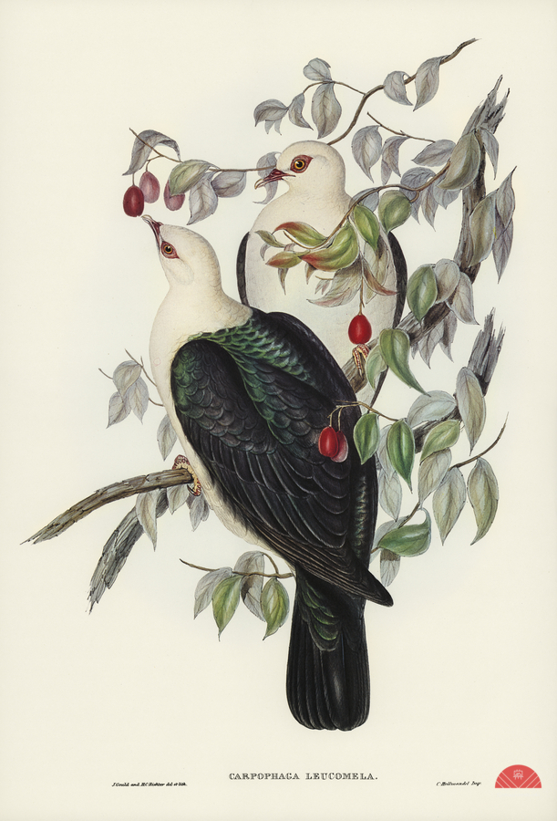 WHITE-HEADED FRUIT PIGEON CARPOPHAGA LEUCOMELA ILLUSTRATED BY ELIZABETH GOULD 1804–1841 FOR JOHN GOULD’S 1804-1881 BIRDS OF AUSTRALIA